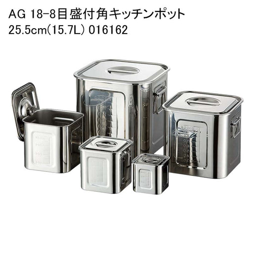 詳細を全部見る※画像は参考画像です。複数のAG 18-8目盛付角キッチンポットの画像です 商品詳細 商品名 AG 18-8目盛付角キッチンポット 25.5cm(15.7L) 016162 サイズ 255x255xH255 手付 入数 1 単価(税込) 15477.00円 商品説明厨房機器 ...