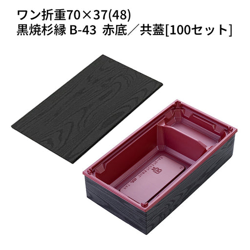 商品詳細 商品名 ワン折重70×37(48)黒焼杉縁 B-43 赤底 共蓋[100セット] サイズ 205×111×48mm 入数 100 色柄 黒焼杉、赤底 セット単価(税込) 104.72円 重量 22.0g 材質 PSP,PS+PP 関連商品 【他...